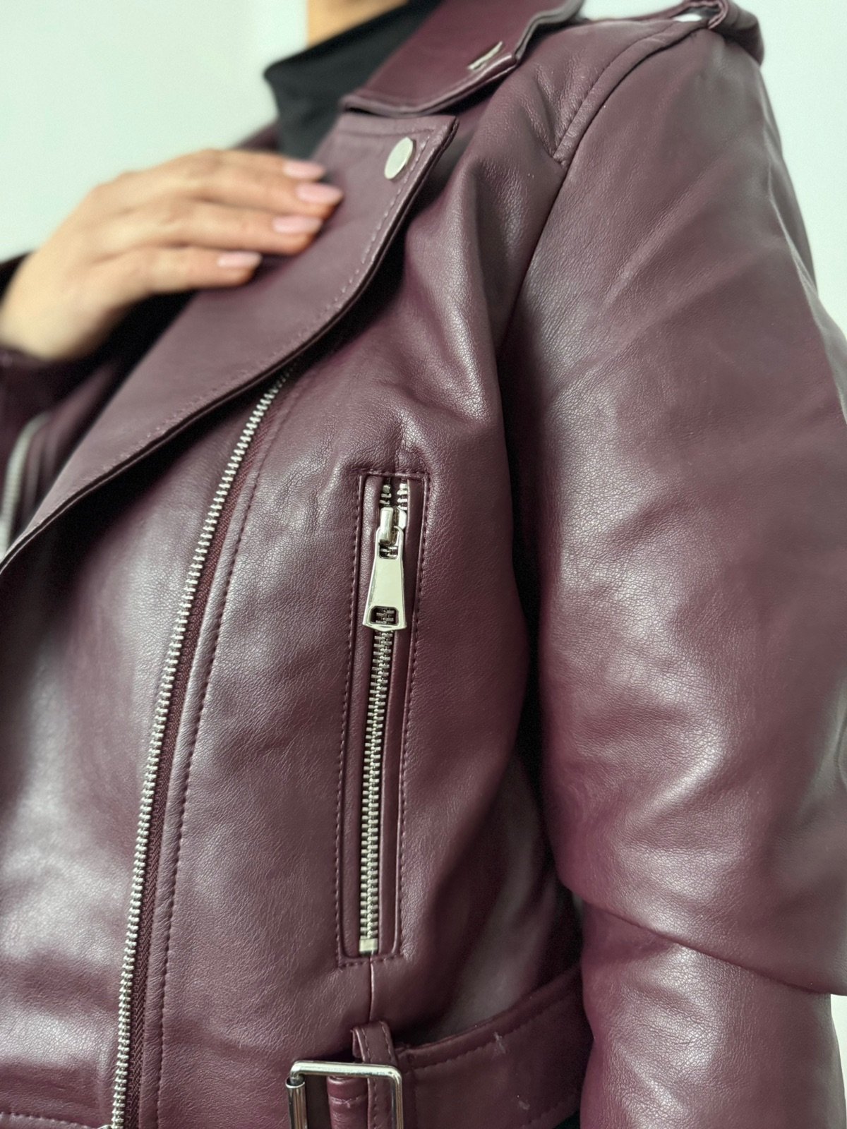 Campera de cuero. Diseño hasta la cintura que estiliza la silueta, destaca por sus detalles en los bolsillos, que le aportan un toque distintivo y sofisticado.