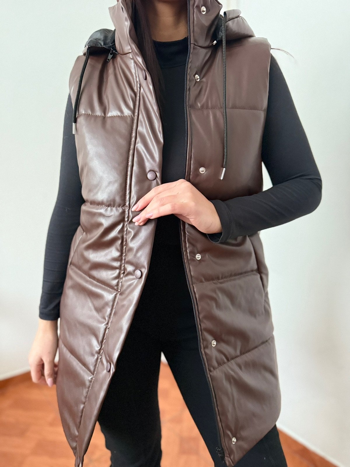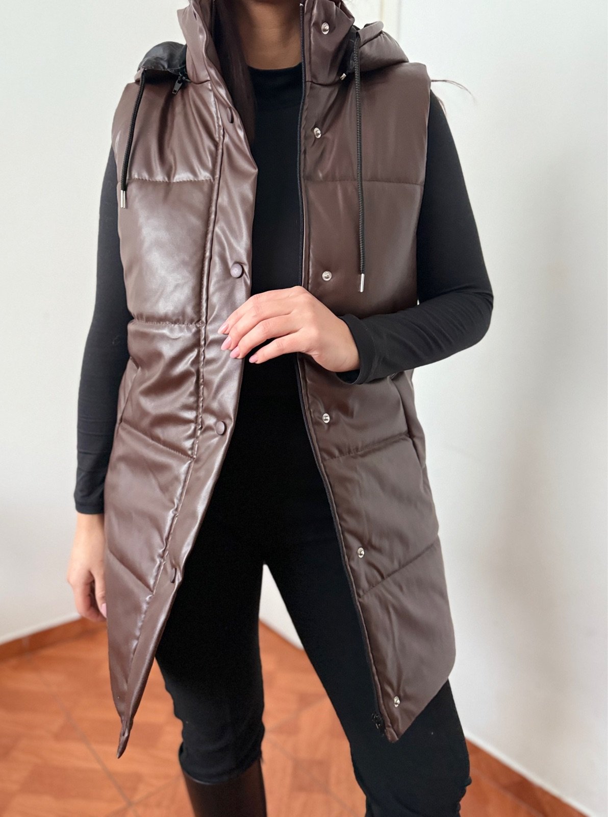 Chaleco de Eco Cuero Engomada con capucha desmontable.